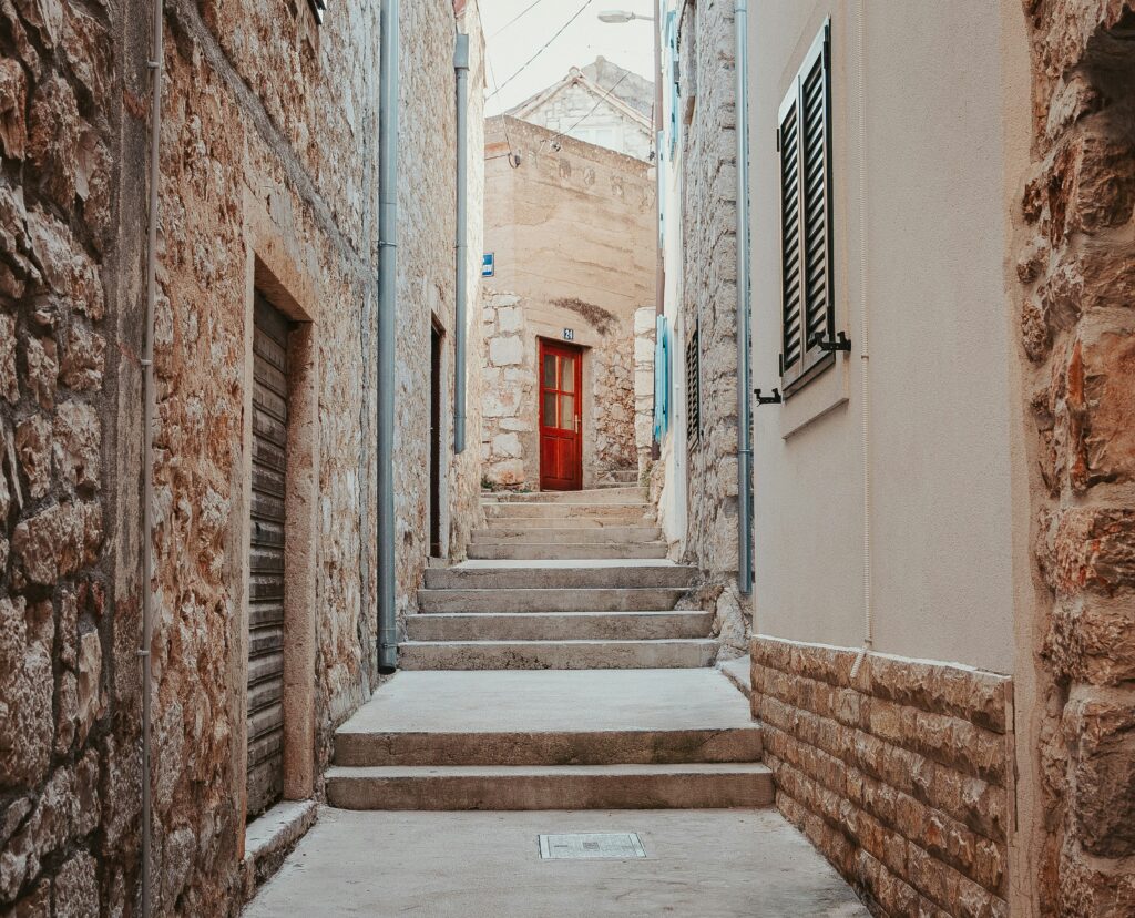 A stroll through the old core of Tisno will bring you to the church of Sv. Duh, one of the most important sacral buildings in the town. You’ll also come across numerous smaller chapels and stone details that testify to the long history of the settlement. The historic core of the town is located on the island side, below Brošćica hill, and is full of typical rural buildings made of stone. The Tisno Tourist Board website states that several old houses from the early 18th century have even been preserved in this area, which were mostly built by Italian families from Bergamo near Milan.