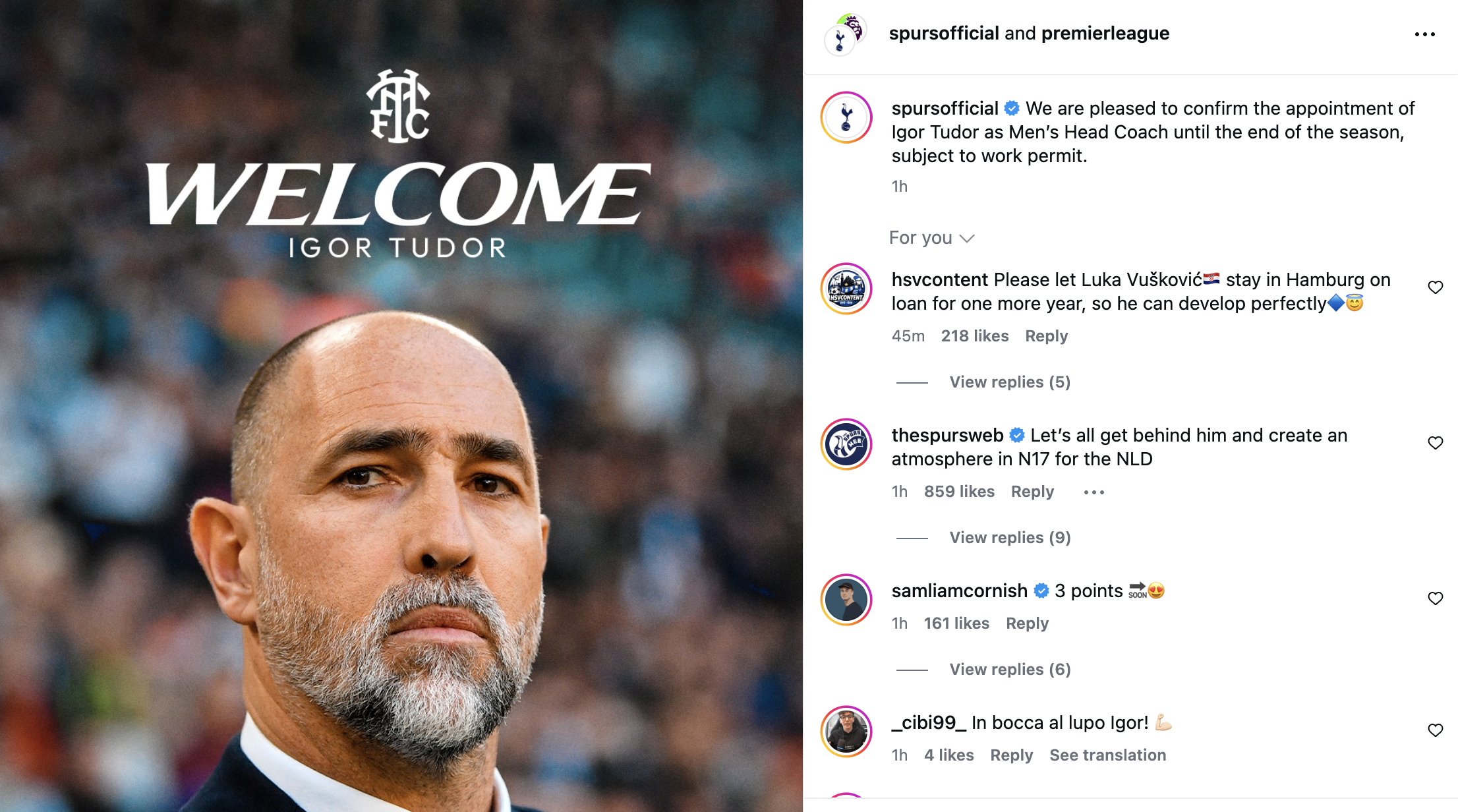 Tottenham Hotspur have officially appointed Igor Tudor as the men’s head coach until the end of the season, pending a ...